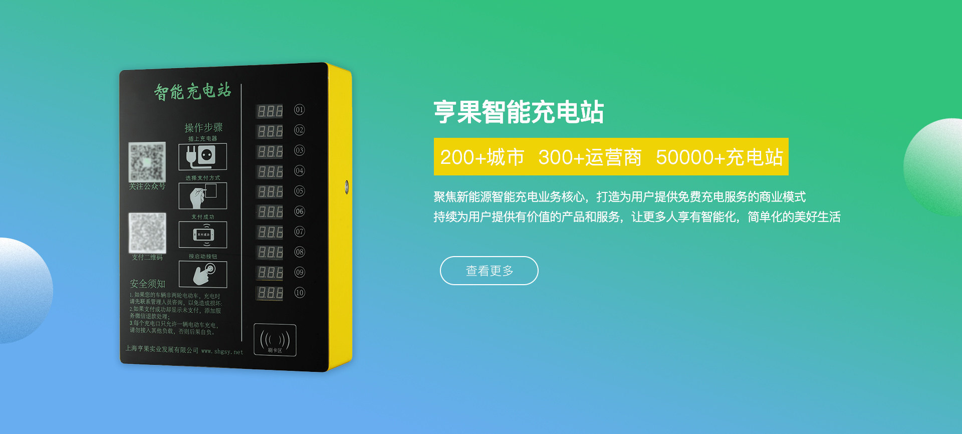 公司總部位于上海市青浦區(qū)趙巷新城經(jīng)濟(jì)開發(fā)區(qū),專注于新能源智能充電操作系統(tǒng)、智能電動(dòng)車充電樁、充電樁行業(yè)運(yùn)營管理平臺(tái)等多類相關(guān) 產(chǎn)品的研發(fā)、設(shè)計(jì)、銷售和運(yùn)營,產(chǎn)品現(xiàn)已廣泛應(yīng)用于國內(nèi)各城市居民社區(qū)、高校、及商業(yè)綜合體車輛聚集區(qū)域及市政配套領(lǐng)域。
